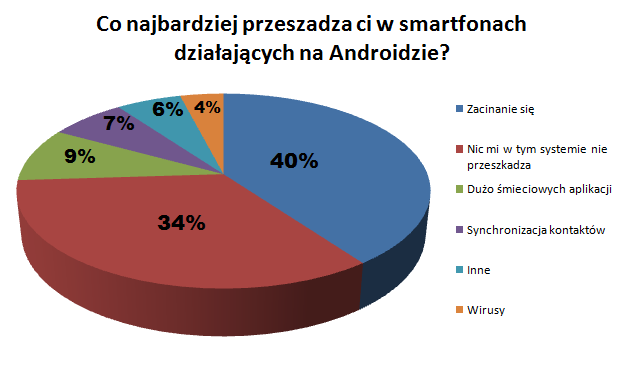 Mimo wszystko, Android zdaje się być bardziej dopracowanym systemem niż Windows Phone. W przypadku tego pierwszego odpowiedź „nic mi w tym systemie nie przeszkadza” wskazało 34 procent ankietowanych, z kolei w przypadku WP – 9 procent. Ciekawe, jak na ich tle wypadnie iOS.