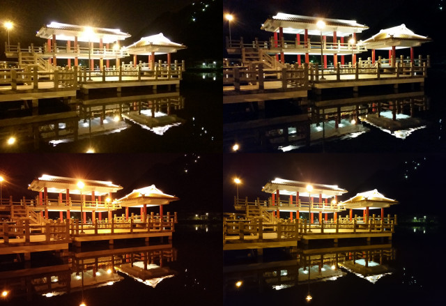 Poniżej porównanie aparatów w smartfonach: HTC One M8 (lewy górny róg), Samsung Galaxy S5 (prawy górny róg), LG Pro 2 (lewy dolny róg) oraz Sony Xperia Z2 (prawy dolny róg).